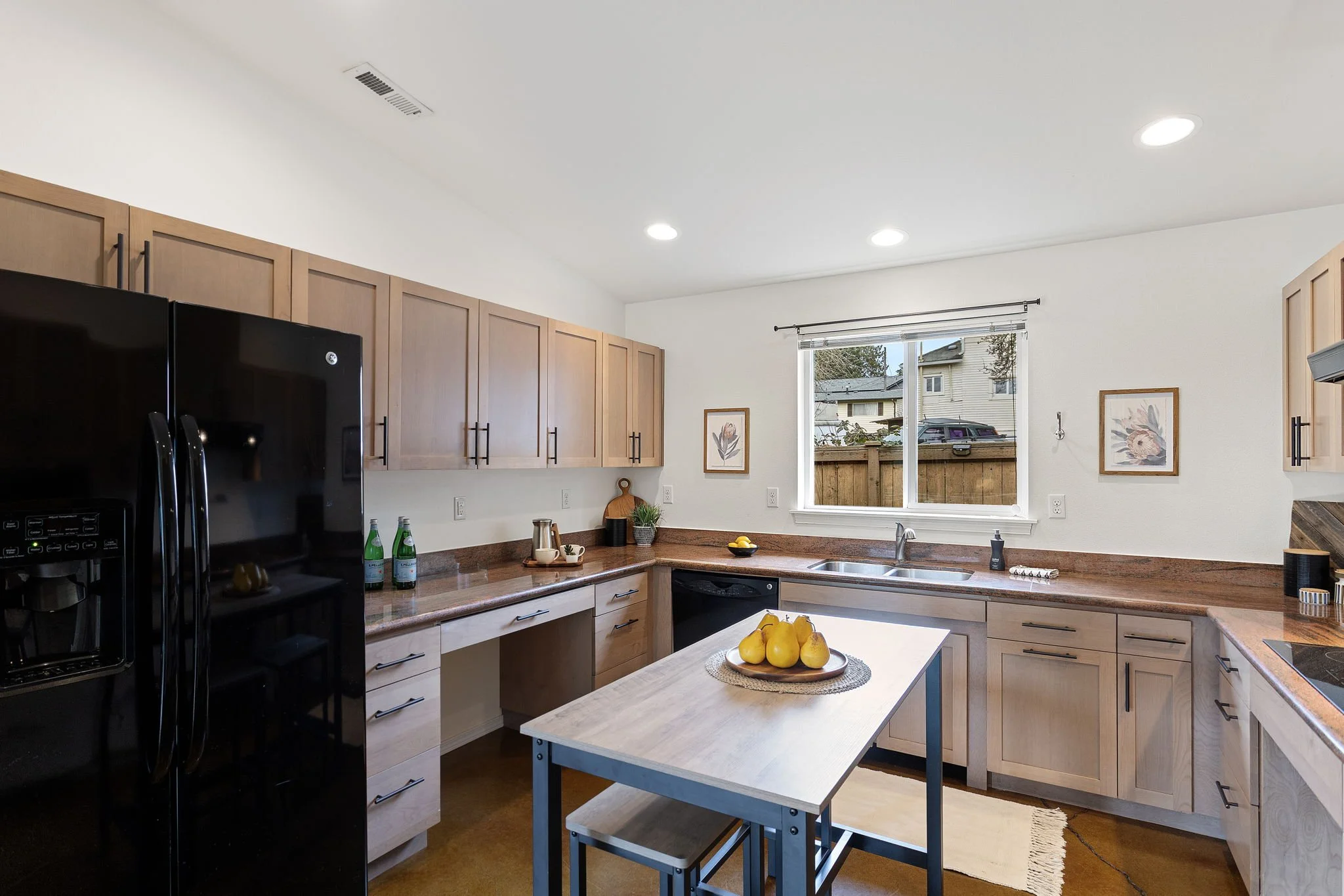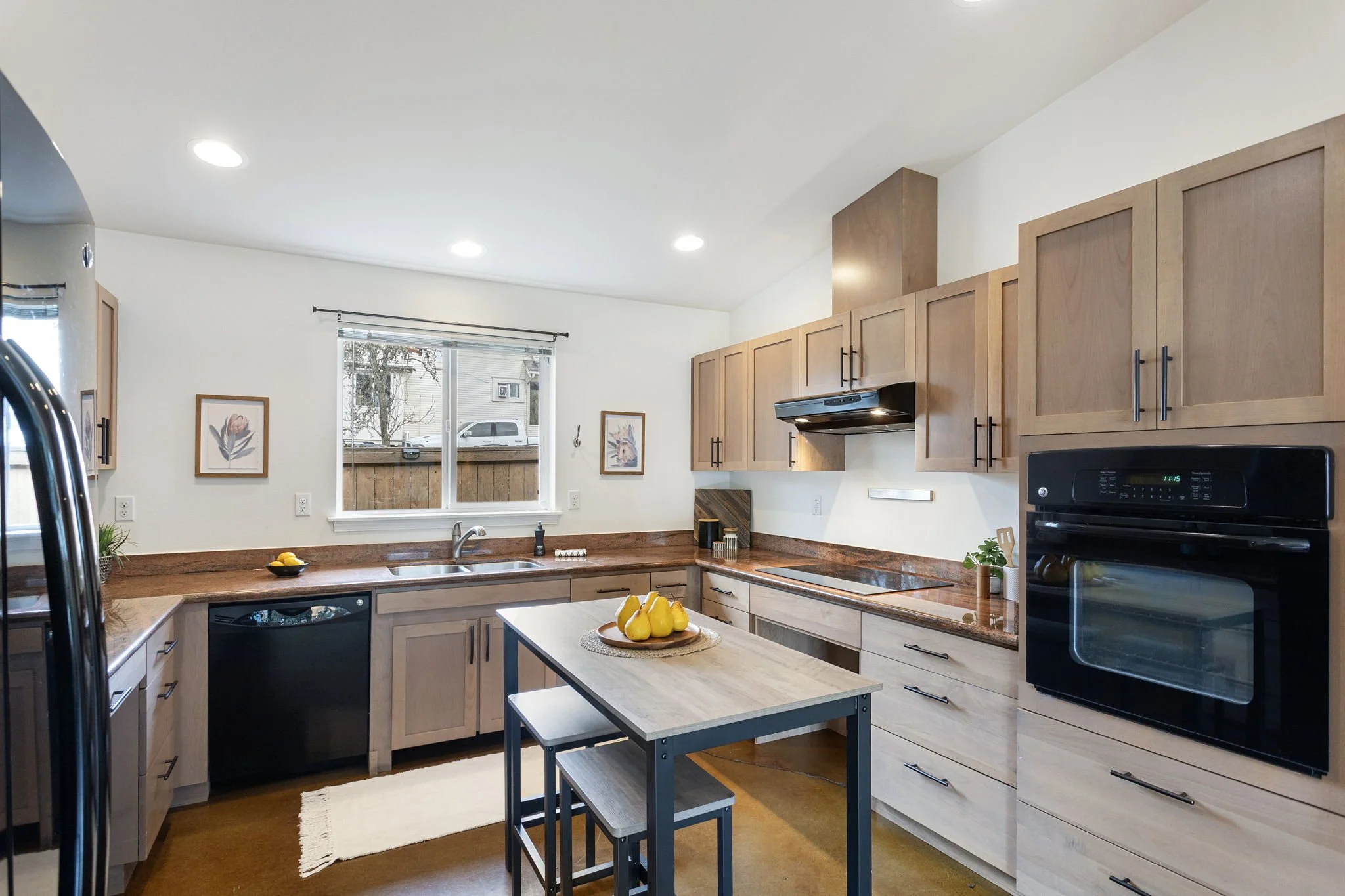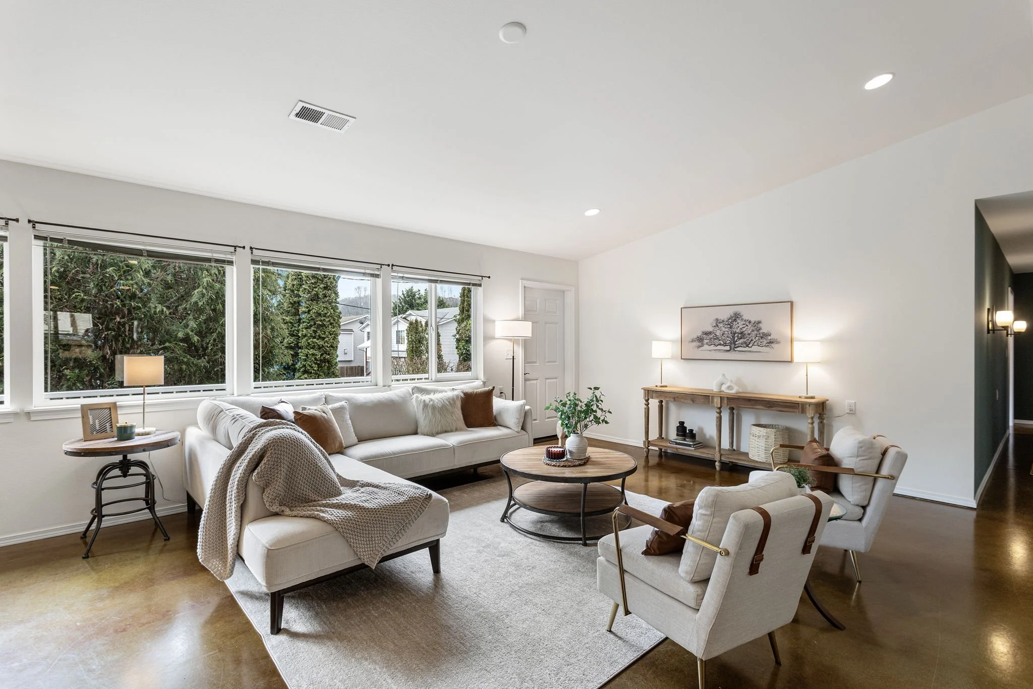 Experience the perfect harmony of style and functionality in this meticulously maintained 4-bedroom, 2.25-bath rambler. The thoughtfully designed open-concept floor plan features vaulted ceilings and is bathed in natural light, highlighting the sleek, polished concrete floors that flow throughout the home. Stay cool during Seattle summers with high-efficiency AC, or retreat to the privacy of your low-maintenance backyard. Enjoy easy access to local South End destinations like Seward Park and Kubota Garden. Commuting is a breeze with two Light Rail stations just minutes away and proximity to both Columbia City and Rainier Valley amenities. The attached, oversized one-car garage offers plentiful storage with a convenient, level approach. Designed with accessibility in mind, this home features a zero-step entry, extra-wide hallways, and a spacious primary suite with a true roll-in shower. Fresh interior paint and new light fixtures top off this move-in-ready gem—come take a look!