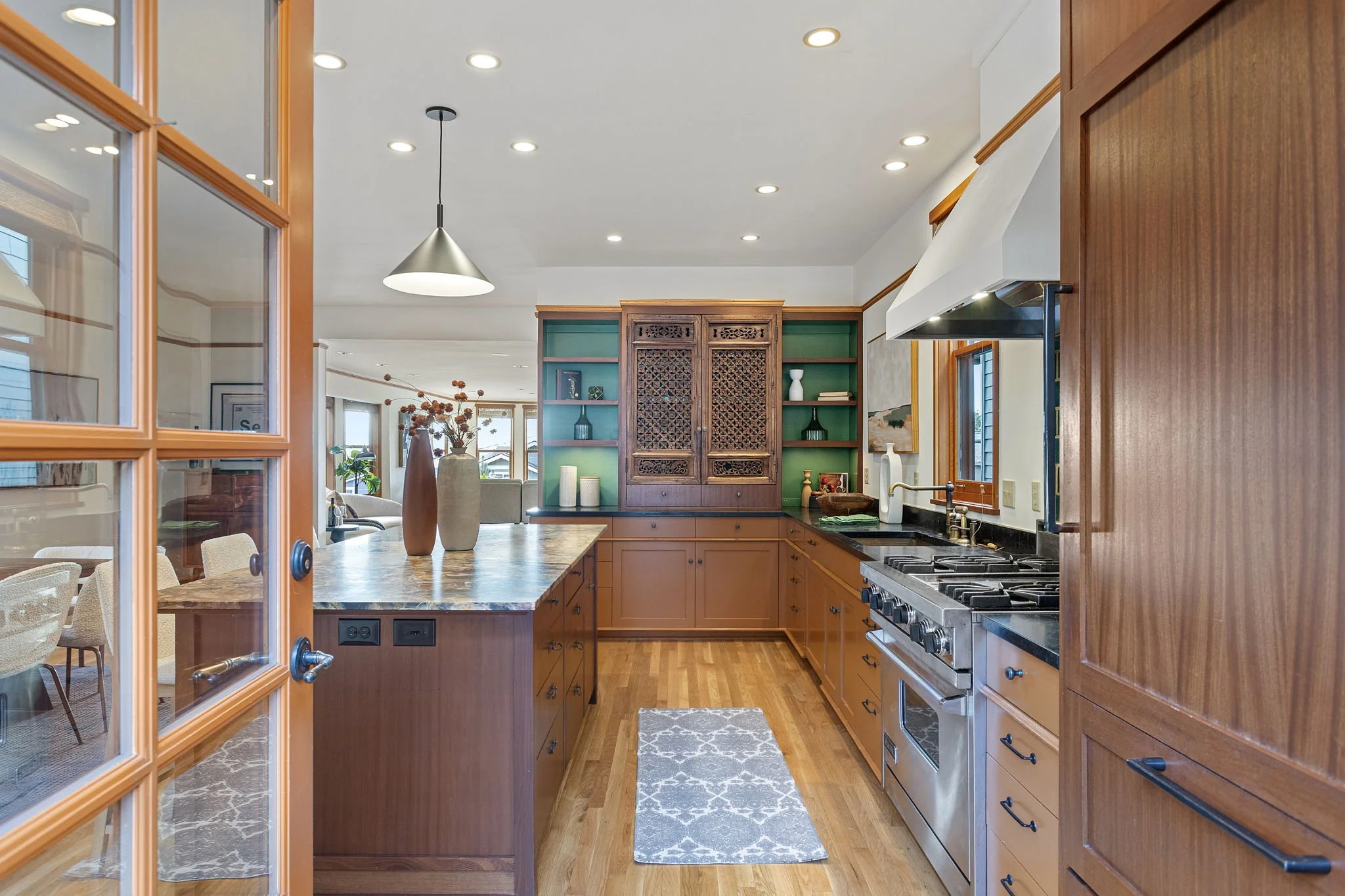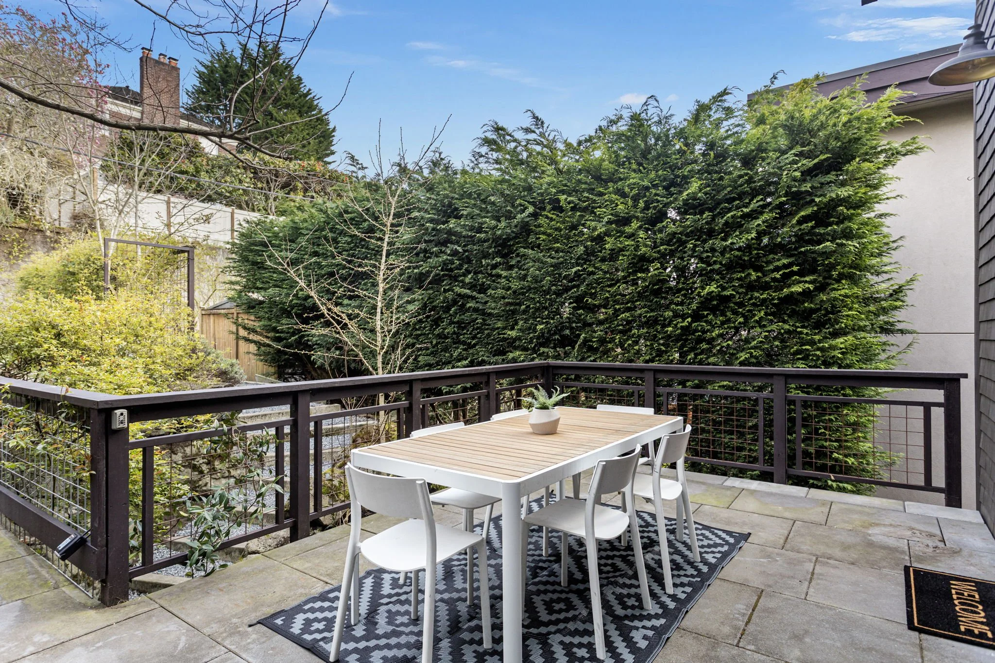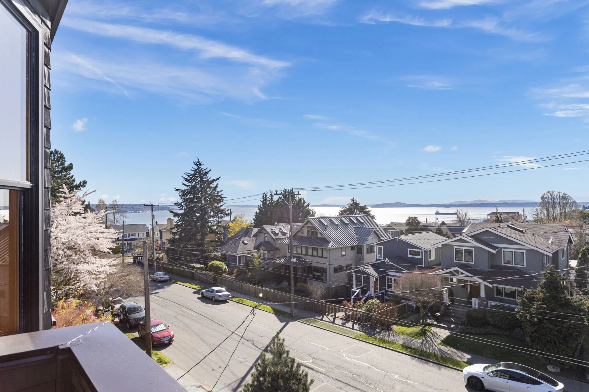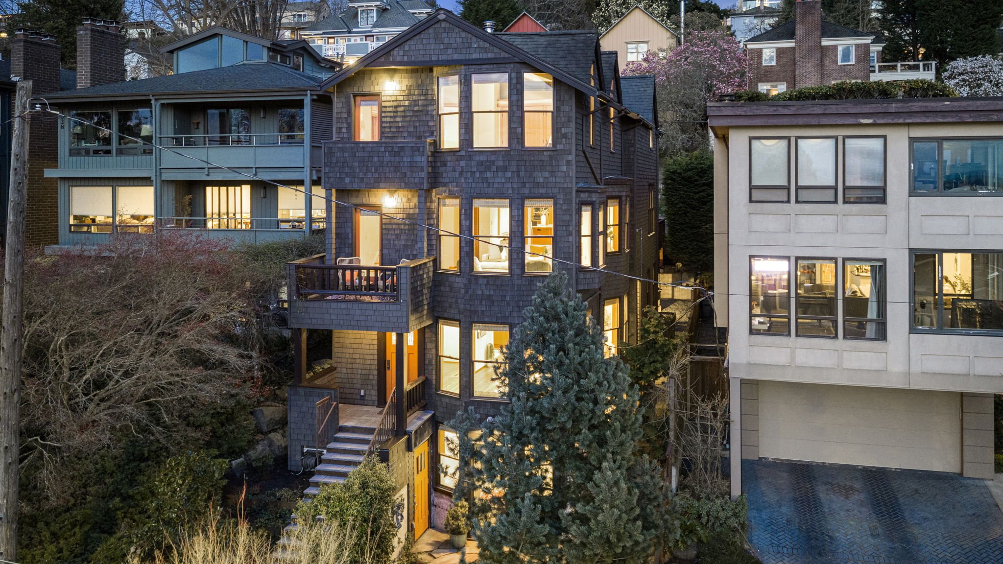 Live in comfort and style in this beautifully crafted 4-story residence perched on the coveted west slope of Queen Anne. Soak in the westerly views of Puget Sound and the Olympics from the main living areas with expansive wood-wrapped windows to the sun-filled top floor enhanced by vaulted ceilings. Quality finishes include rich hardwoods, vertical grain fir doors, deep custom closets, and wood encased windows. The chef’s kitchen will inspire hosting large gatherings and includes a center island with Italian marble, limestone counters, custom glazed tiles, a Viking stove and a deep copper sink. This perfectly opens to a lovely serene outdoor setting with a private deck. Top level has a spacious primary suite with a deluxe bathroom ensuite, an additional bathroom and two more bedrooms- one with scenery of Elliot Bay. The second level mimics the third floor with tall windows, hardwoods and offers a Great Room, bar, a private home office/guest bedroom and two baths. The first level is an exquisite self-contained Guest Suite. Features kitchen with vintage coral pink marble counters, cozy living room and bedroom with radiant in floor heat. Perfect as an Airbnb/Vacation rental or a nice way to spoil your guests. 3 rare off-alley parking spaces provide direct access to the main living level. Updated systems, heat pump w/AC. Unbeatable location, just minutes to local dining, shopping, downtown waterfront along with the best views in the city from Kerry Park!